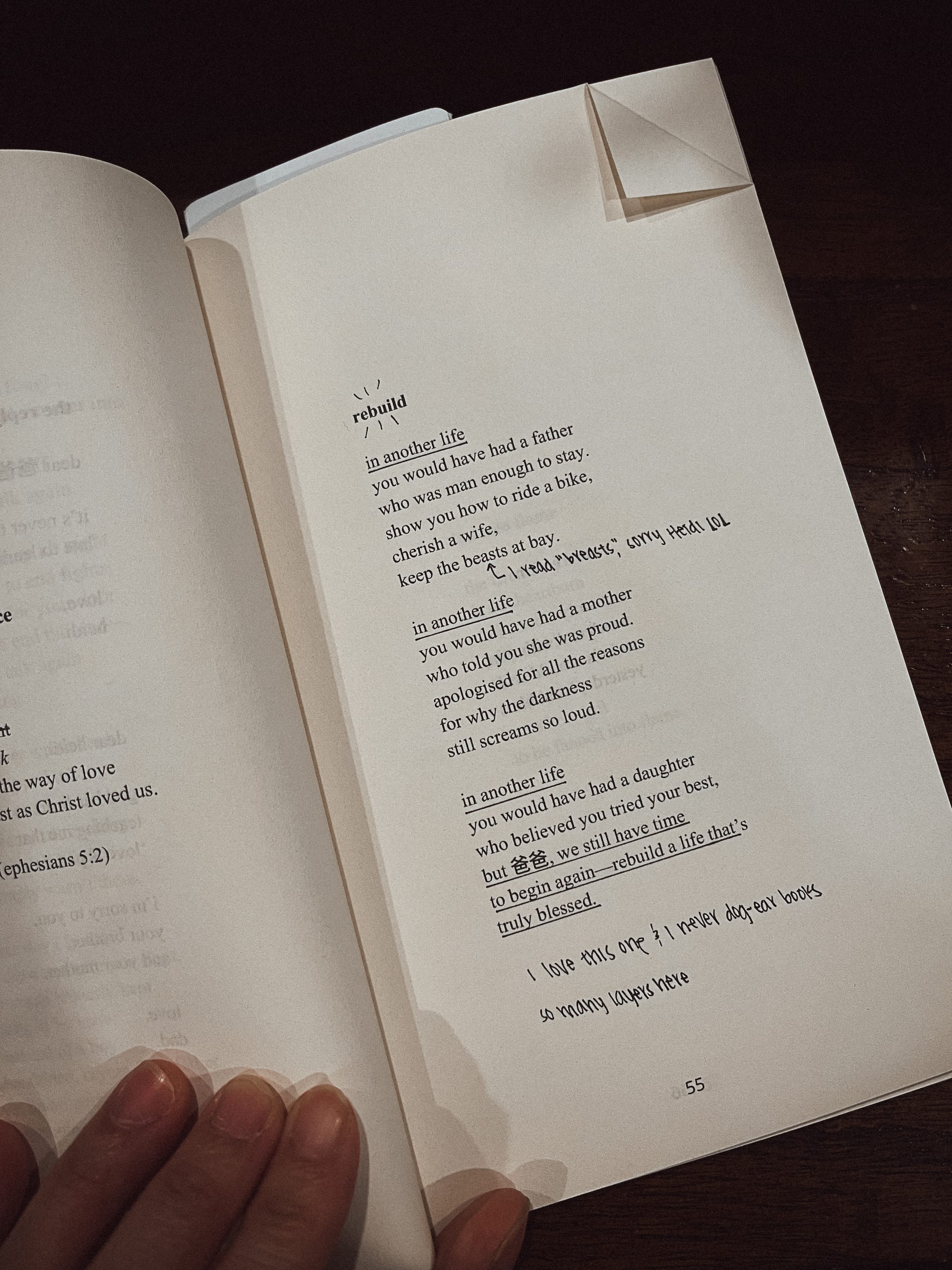 I don’t often find myself nodding along as I read. Certain parts, though, were so relatable, I couldn’t help it. The delete button? Yes. The shrinking myself in response to the more chaotic members of my family? Yes. Not having a map for grief? Yes.